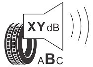 Вимірює рівень шуму шини зовні автомобіля в децибелах. Клас шуму оцінюється від показника «A» (тихо) до показника «C» (гучно).