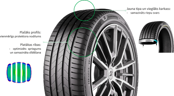 - Оптимізована геометрія форми шини забезпечує більш високу енергоефективність
